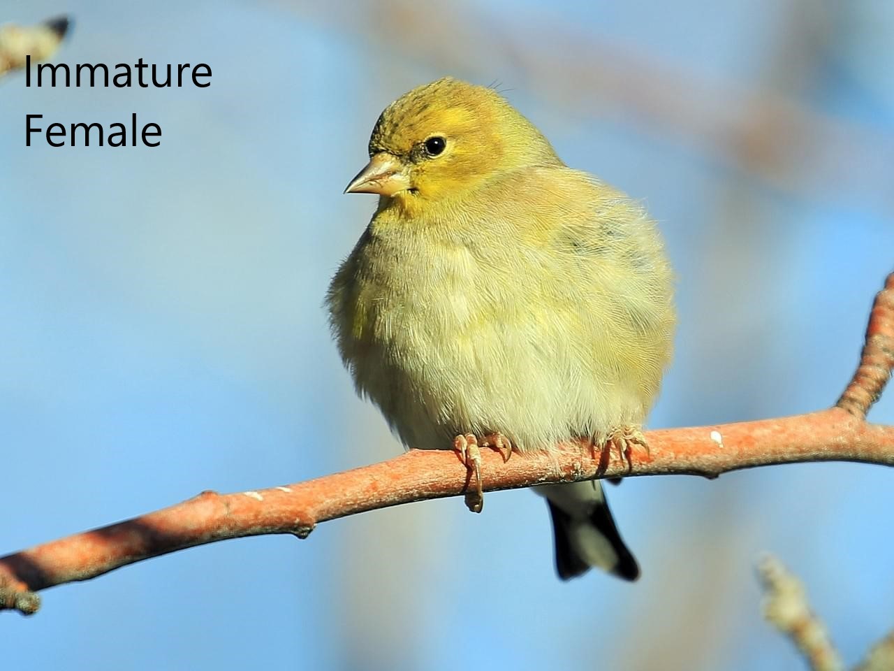 These guys are pretty easy to spot, what with their yellow coloring and all. The brightness of their coloring depends on whether it is a mature female, immature female, a breeding male, a non breeding male, or an immature male. From what I understand, these birds breed in the warmer months. Winter males and all females are duller in color, but when it warms up, the males get their vibrant color back!