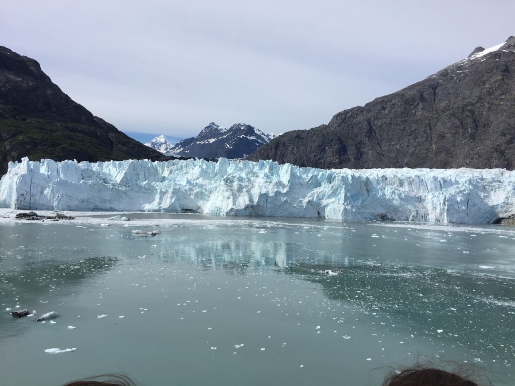 College Fjord is a national park in Alaska. For those of you who don’t know what a fjord is, Wikipedia defines it as a “long, narrow inlet with steep sides or cliffs, created by a glacier.” It is essentially a narrow bay, and this particular one is surrounded by glaciers on the sides. It is called College Fjord because many of the glaciers are named after prominent colleges. The ship took us close to a few of the glaciers and we got to see the calving. Calving is when big chunks of the glacier fall off from warmer temperatures. I had some mixed thoughts about seeing this unfold. On one side it’s a once in a lifetime opportunity to see this happen. As the ice cracked and fell loose, it sounded and felt like thunder was rolling in off the coast. But no, it was a bright sunny day. I was watching this glacier melt with just a t-shirt on! And that brings me to the other side of how I felt. It was sad watching this magnificent phenomenon retreating up the mountain on its way to extinction. It’s sad because humans are the ones that are causing this destruction to happen. And the worst part was the very thing that made it possible for me to see this happen has a tremendous effect on why the glaciers are melting in the first place. There was some cognitive dissonance going on in my head while seeing this, but it was truly remarkable to have seen a calving glacier.
